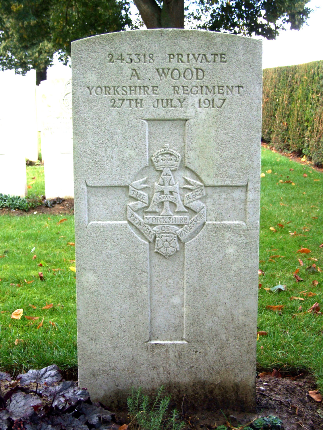 4th Battalion Yorkshire Regiment. Killed 27 June 1917. Photo : Christopher Weekes, (<weebex12@hotmail.com>) |