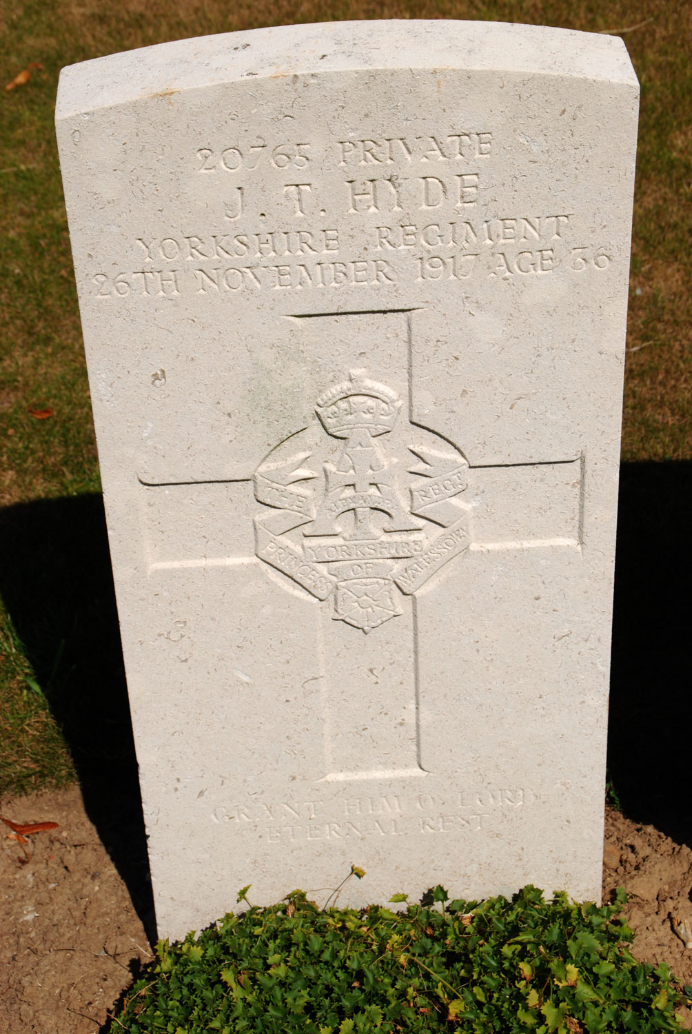 12th Battalion Yorkshire Regiment. Son of Mary Jane Goodchild; husband of Dorothy Jane Hyde, of 1, Cook St., Middlesbrough. Died 26 November 1917. Aged 36. Born Middlesbrough, Enlisted Middlesbrough. "GRANT HIM O LORD