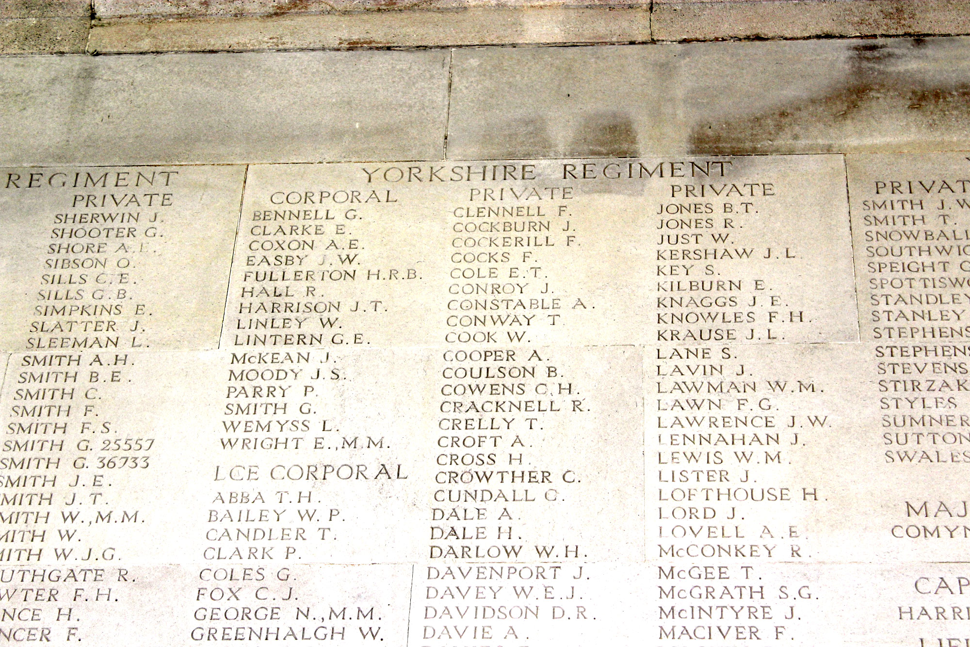 One of the Panels for the Yorkshire Regiment on the Arras Memorial.