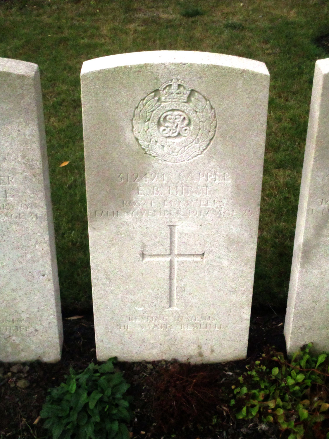 H.Q. Signal Coy. Royal Engineers, formerly 36335 the Yorkshire Regiment. Only son of Arthur Ed. and Frances M. Hirst, of 2, Oakes Rd., Lindley, Huddersfield. Killed 17 November 1917. Aged 25. Born Huddersfield (Yorks), Enlisted Huddersfield (Yorks).