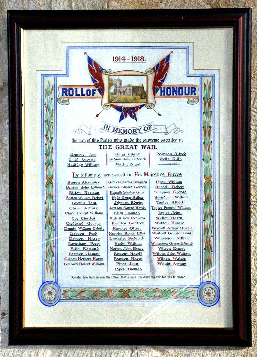 The Roll of Honour in St. Cuthbert's Church, Crayke.
