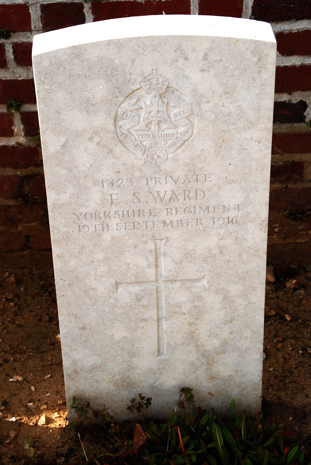 1323. 5th Battalion Yorkshire Regiment. Died 19 September 1916. Born Leeds, Enlisted Bridlington. Bottom Wood Cemetery, - see photo of special memorial at foot of page |