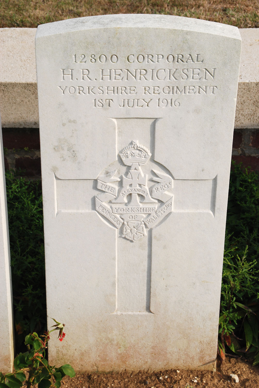 10358. 2nd Battalion Yorkshire Regiment. Died 1 July 1916. Born Henley (Oxon), Enlisted London, Resided West Norwood (S E). Vernon Street Cemetery, - see photo of special memorial at foot of page |