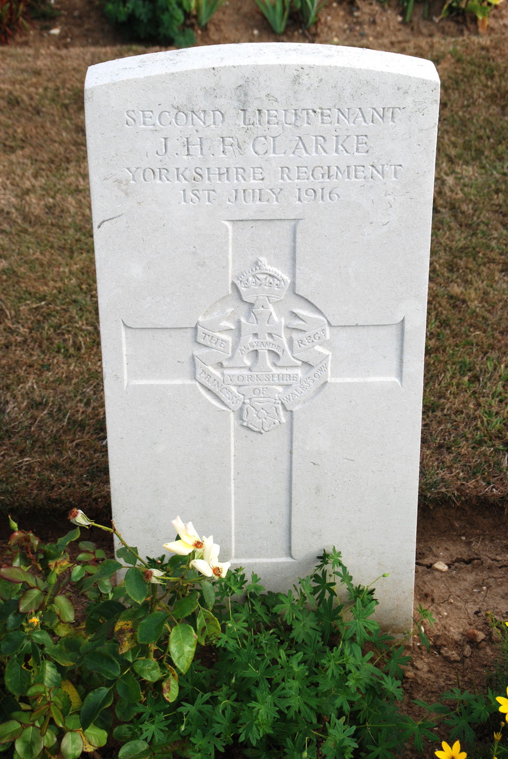 Clarke . 7th Battalion Yorkshire Regiment. Died 1 July 1916. |