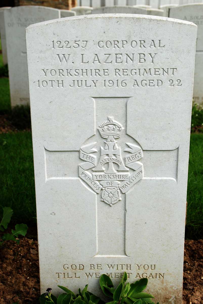 Lazenby. Died 10 July 1916. Aged 24. Born North Ormesby (Middlesbrough), Enlisted Middlesbrough, Resided North Ormesby. |