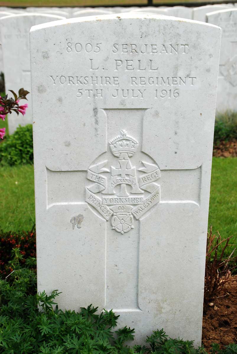20 identified soldiers of the Yorkshire Regiment are buried here, including 2nd Lieutenant Donald Bell, VC. There are also at least two graves of soldiers of the Yorkshire Regiment who are "Known to God" only.