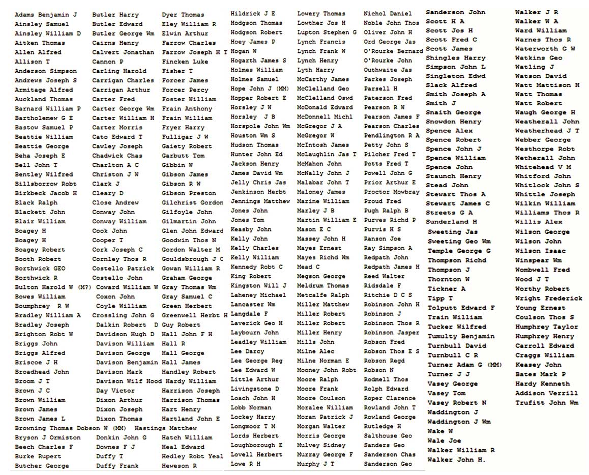 From the names on panels 1 to 4 of the Hartlepool Redheugh Memoria the following are identified as having served in the Yorkshire Regiment;-