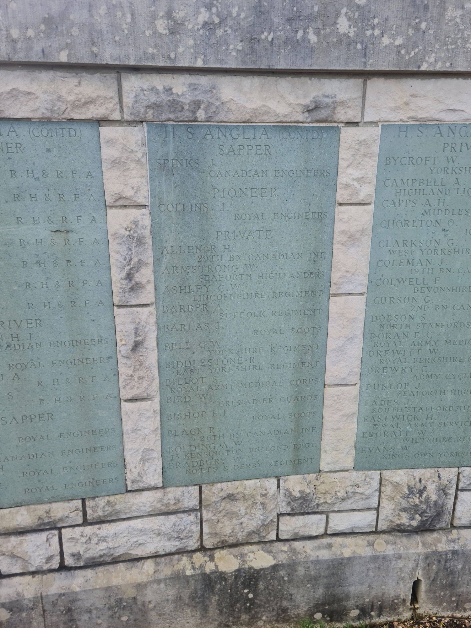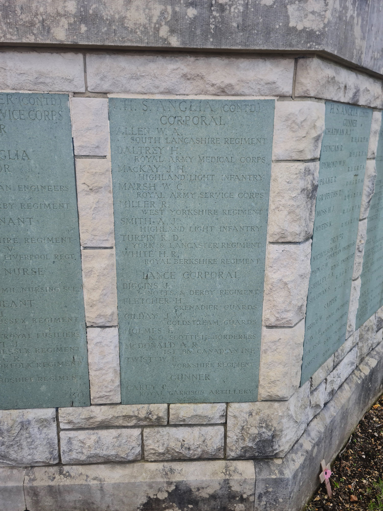 There are 10 names for men who served with the Yorkshire Regiment, including 3 who went down with the Hospital Ship "Anglia" on 17 November 1915.