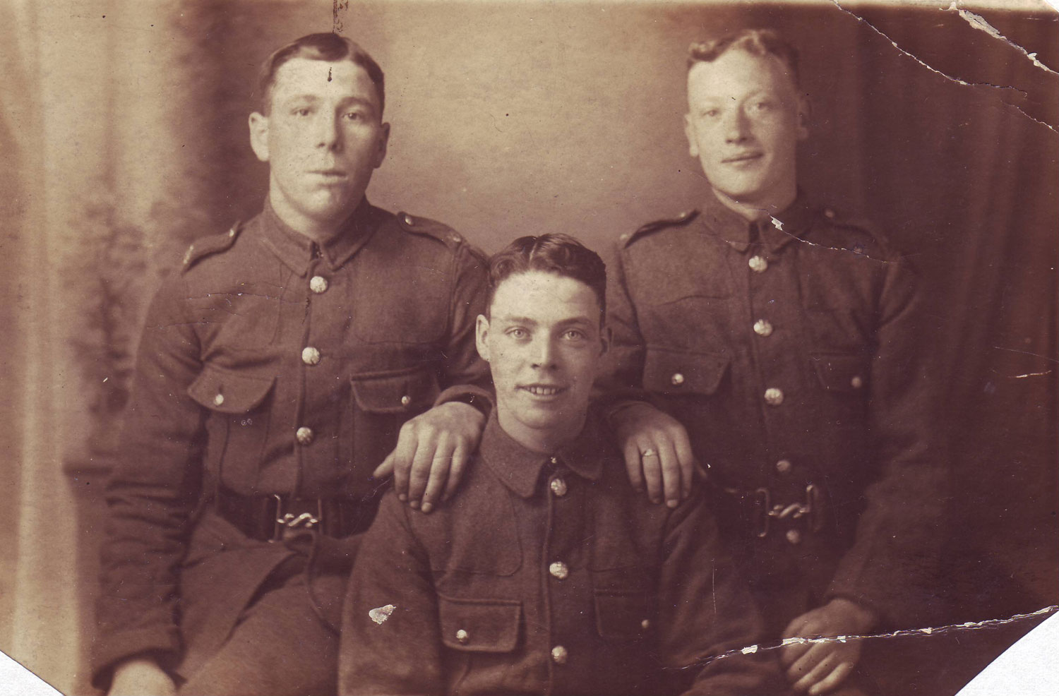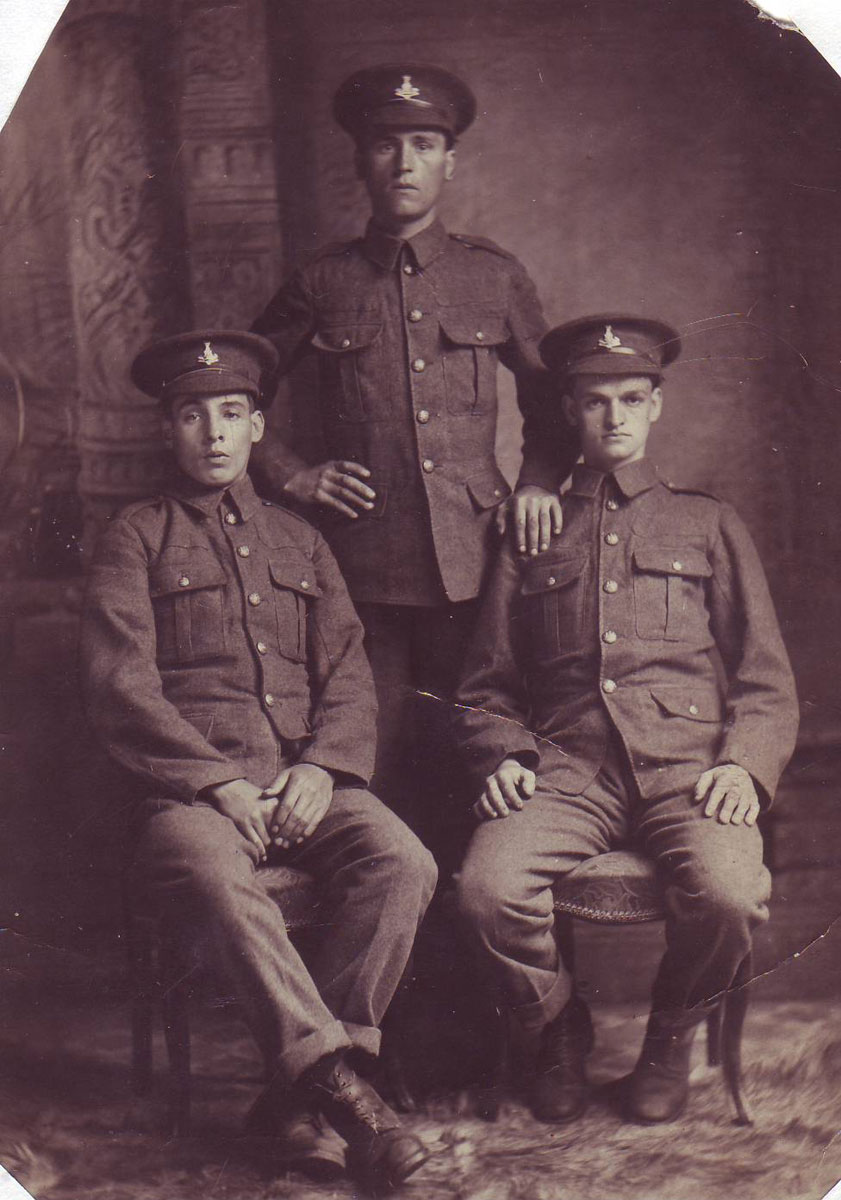 | Private Tom Young. 8th Battalion. One of the three men on the right. | Unidentified soldier, 12th Battalion Yorkshire Regiment (Teesside