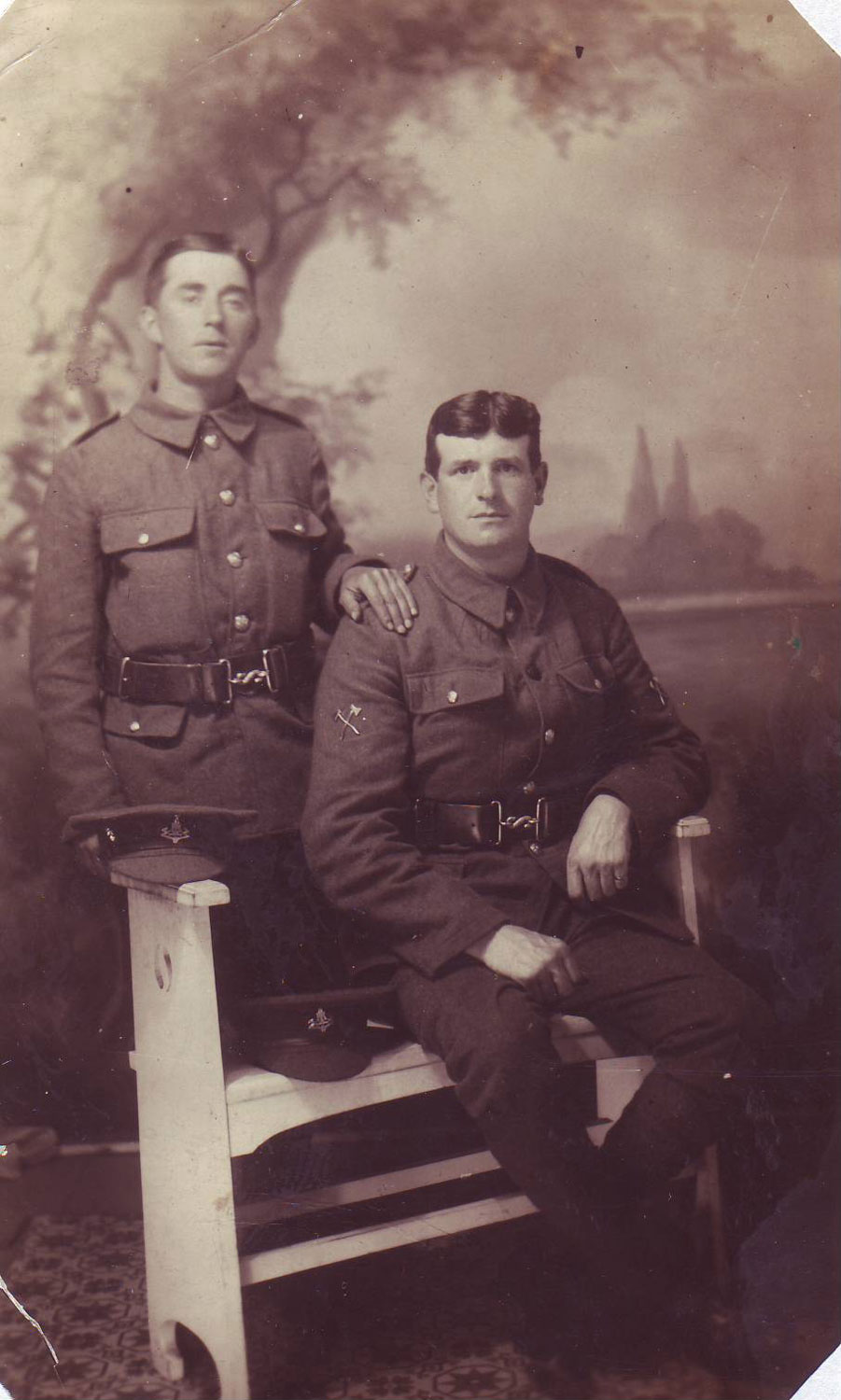 Unidentified Yorkshire Regiment soldiers. The soldier on the right has crossed axes on his right sleeve, showing that he would have been in the Pioneer section or platoon of his particular battalion. |