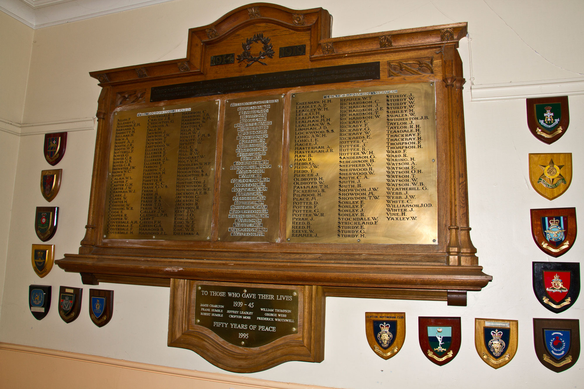 a plaque commemorating the dead of both World Wars.