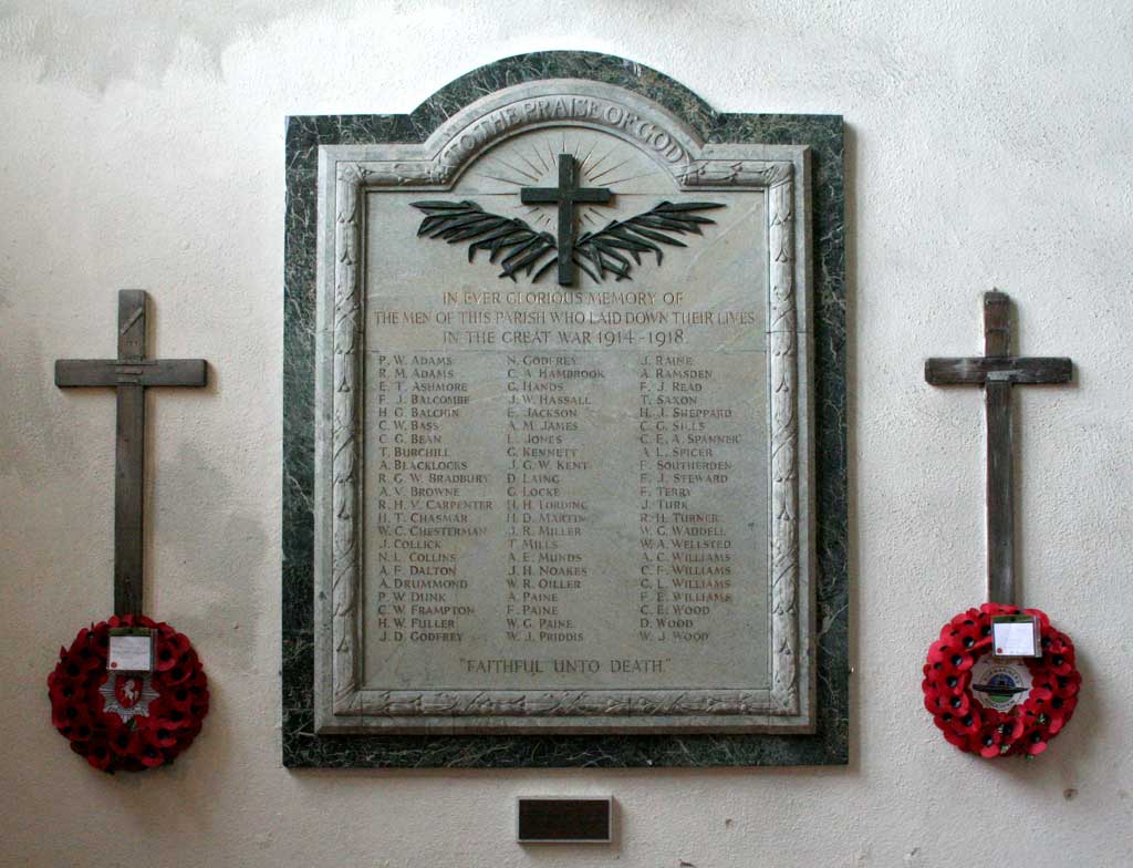 The Memorial Plaque inside the Church of All Saints, Lydd, includes