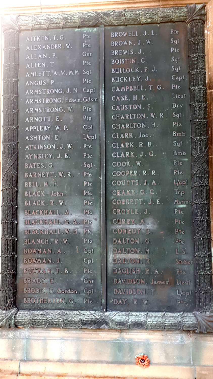 "TO THE GLORY OF GOD AND IN ABIDING MEMORY OF THE/ MEN OF MORPETH WHO