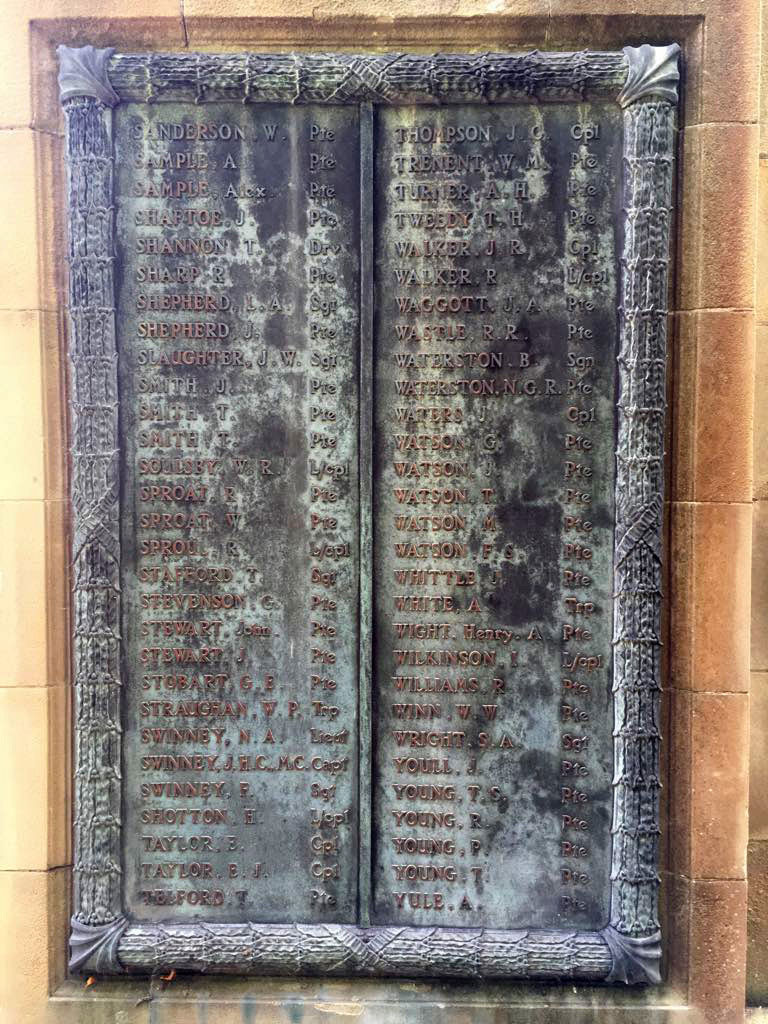 Panels on the Morpeth War Memorial. Select one of the images above for a larger sized image which opens in a new window. Photos : Elizabeth Nicholl |