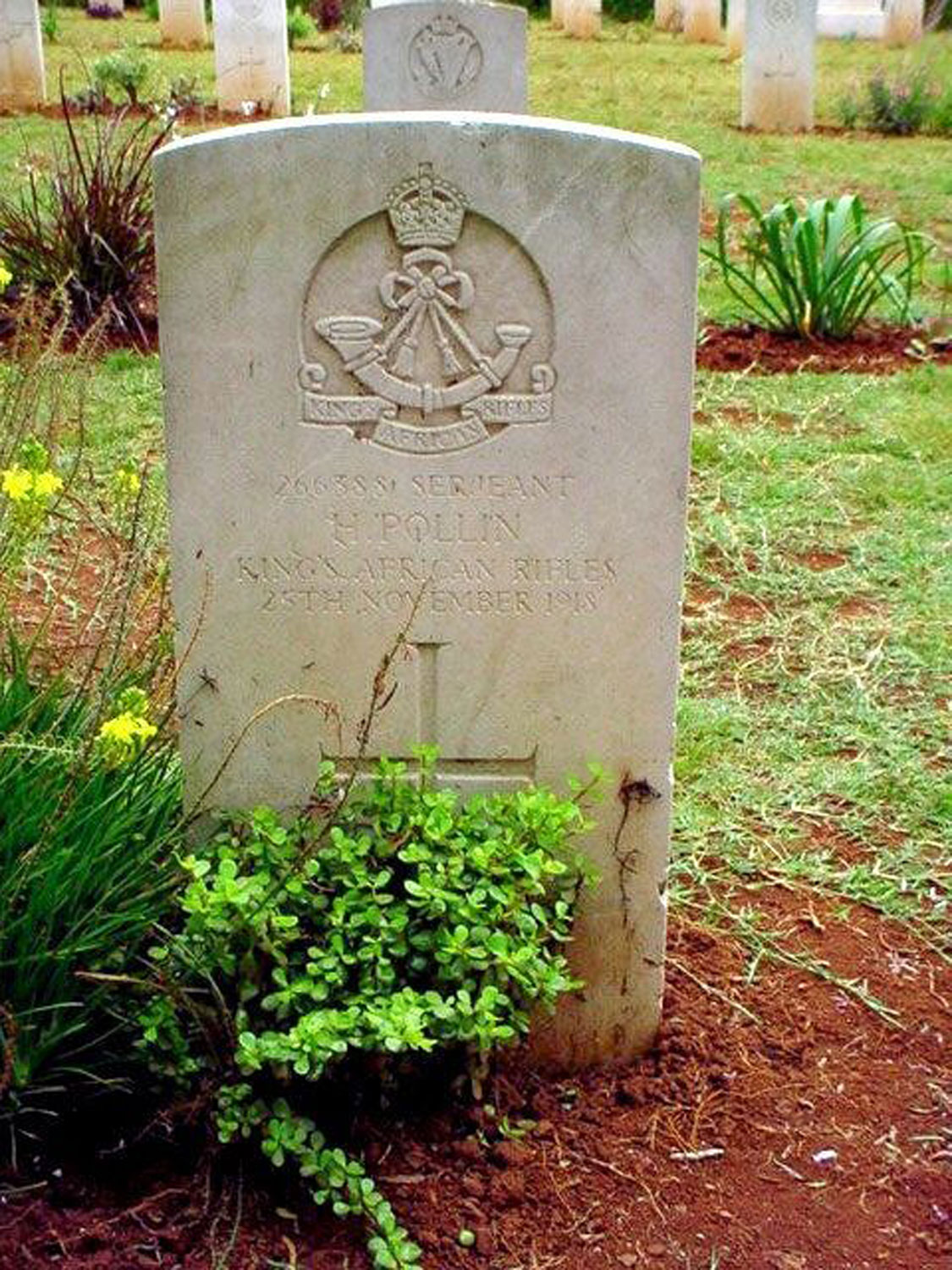 showing the headstones of Serjeant H Pollin in Nairobi South Cemetery.