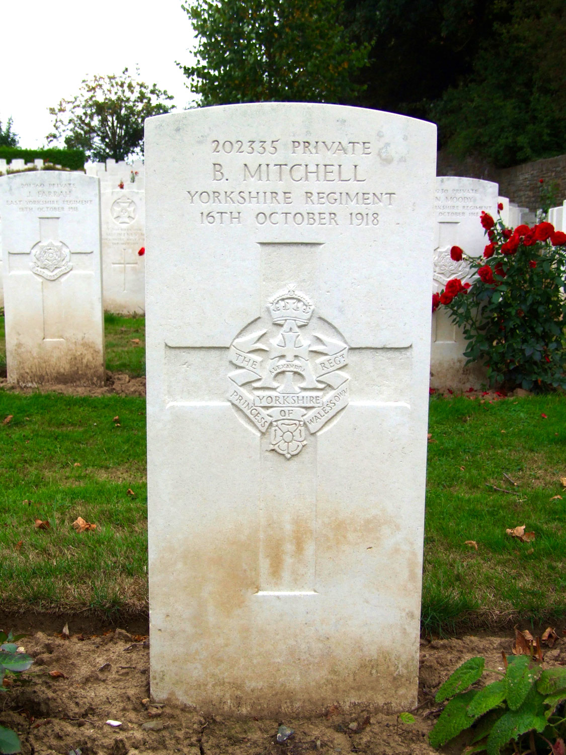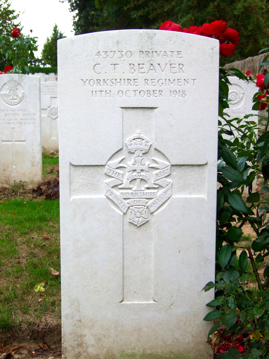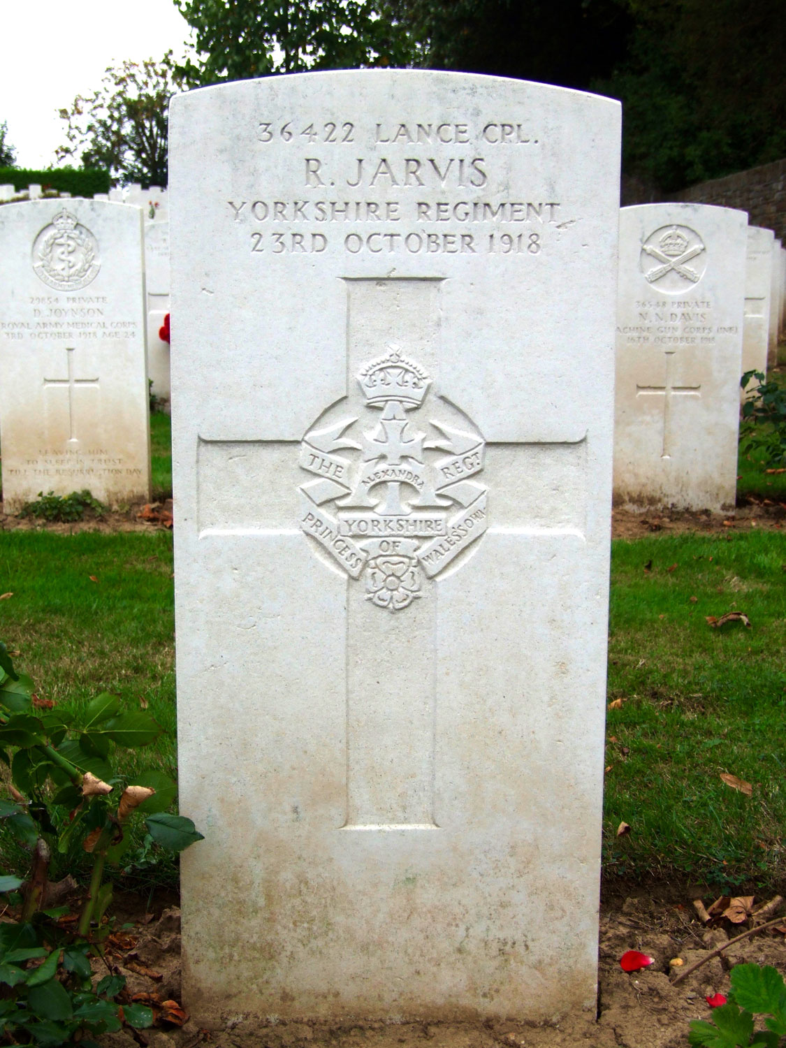 34792. 5th Battalion the Yorkshire Regiment, formerly TR/5/5690 2nd T R Battn. Son of John William and Sarah Vessey, of 43, Wharton St., Retford, Notts. Died 13 October 1918. Aged 20. Born Retford (Notts), Enlisted Retford. "HE LEFT ALL