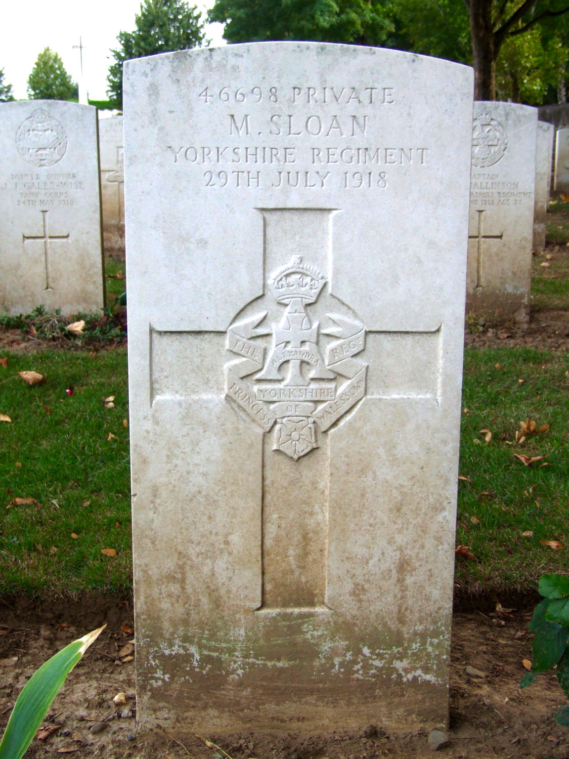 | Private William Lowrey. 30255. 4th Battalion the Yorkshire Regiment, formerly 5681 Northumberland Fus. Died 18 September 1918. Born Dalmuir (Dumbarton), Enlisted Newcastle-on-Tyne. |