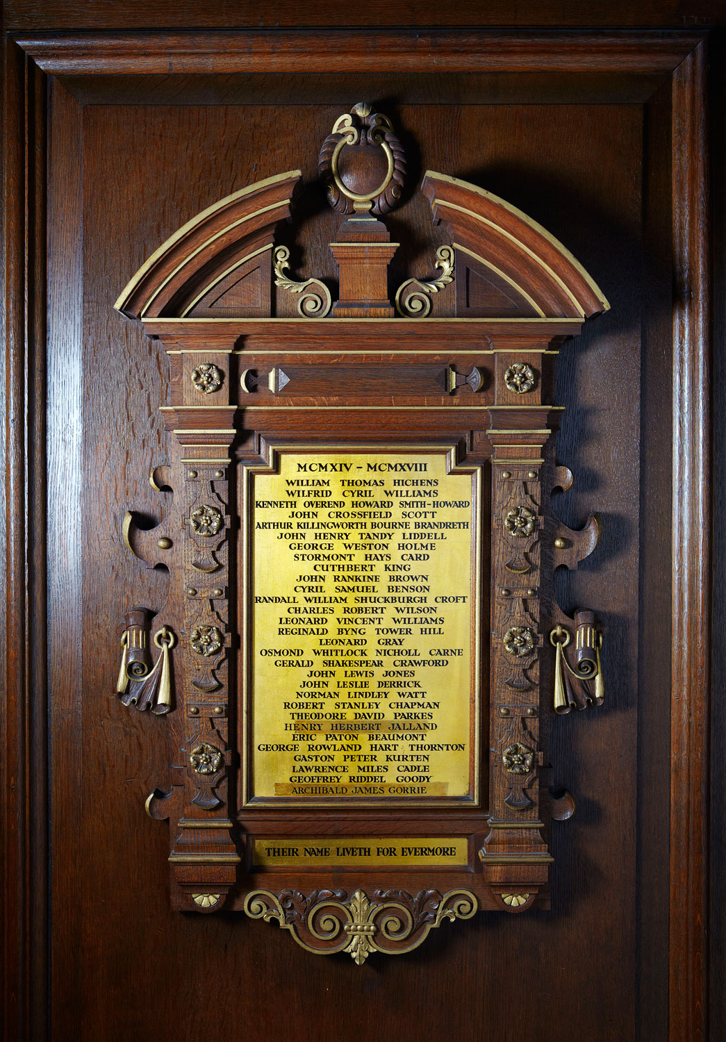 Two memorial panels and a stained glass window are in the Pembroke College Chapel, and commemorate those members of the College who lost their lives in the First World War.