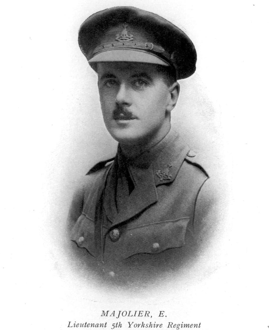 Lieutenant Edouard MAJOLIER. 5th Battalion Yorkshire Regiment. Died at home 26 November 1918. Aged 30. Served at the Battle of St. Juilen with the 5th Battalion. Awarded a Silver War Badge, November 1917. Death registered at St. George's, Hanover Square, London. Was the son of Edouard and Susannah Majolier and husband of Geraldine C Mojolier. Photo courtesy of Richard Roberts (<richard.nsw@googlemail.com>) (A biography of Lieutenant Majolier can be found on the Christ Church College, Oxford, website.) |