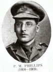 PHILLIPS. 13th Battalion Yorkshire Regiment. Killed 25 September 1916. Buried PHILOSOPHE BRITISH CEMETERY, MAZINGARBE. The following information on Lieut. Phillips was provided by Bob Coulson. "Percy Phillips sailed with the 13th Battalion as they set out on “The great adventure” from Southampton, landing at Le Havre on June 6th 1916. In July the battalion took over trenches in the Maroc sector and remained in this area until moving into the Loos sector on September 11th 1916. In the area of the Village Line and Duke Street the battalion carried out several trench raids and it was during one of these that Lt Percy Montague Phillips was killed in action on September 25th 1916 exactly one year to the day that the first Battle of Loos had begun." A much fuller biography of Lieutenant Phillips, with especial emphasis on his school days, can be read on the pages of The Bancroftian Network. |