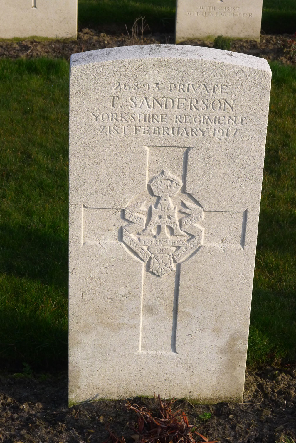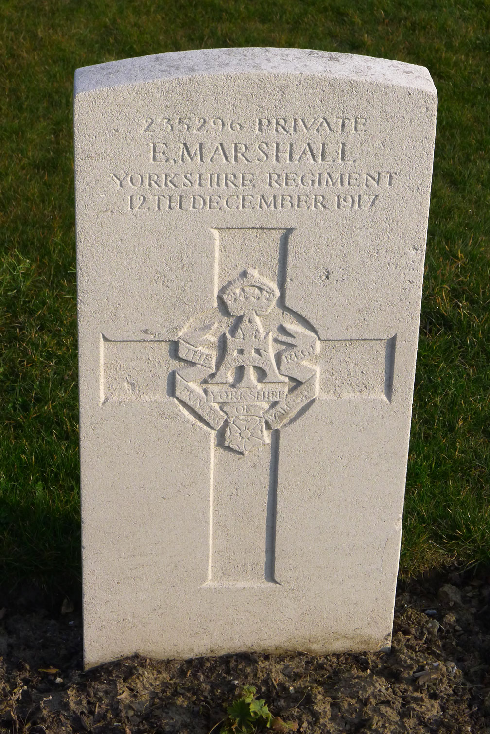 2nd Battalion the Yorkshire Regiment. Killed 7 January 1918. KNOWN TO BE BURIED IN THIS CEMETERY "THEIR GLORY SHALL NOT BE BLOTTED OUT" Photo by Terry Holmes (<terryholmes@hotmail.co.uk>) |