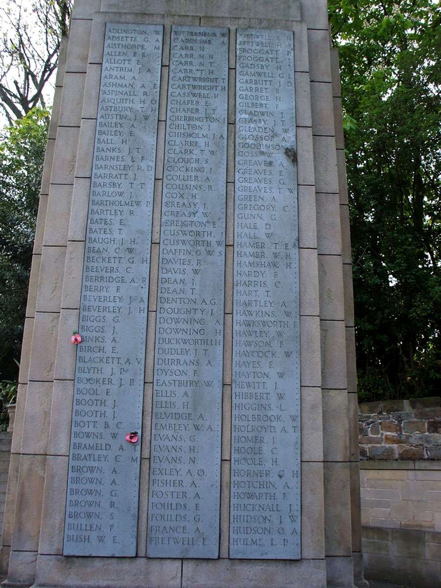 The First World War Commemorations on the Rawmarsh War Memorial. Select one