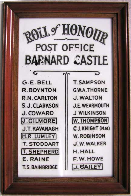 The Roll of Honour in the Post Office at Barnard Castle
