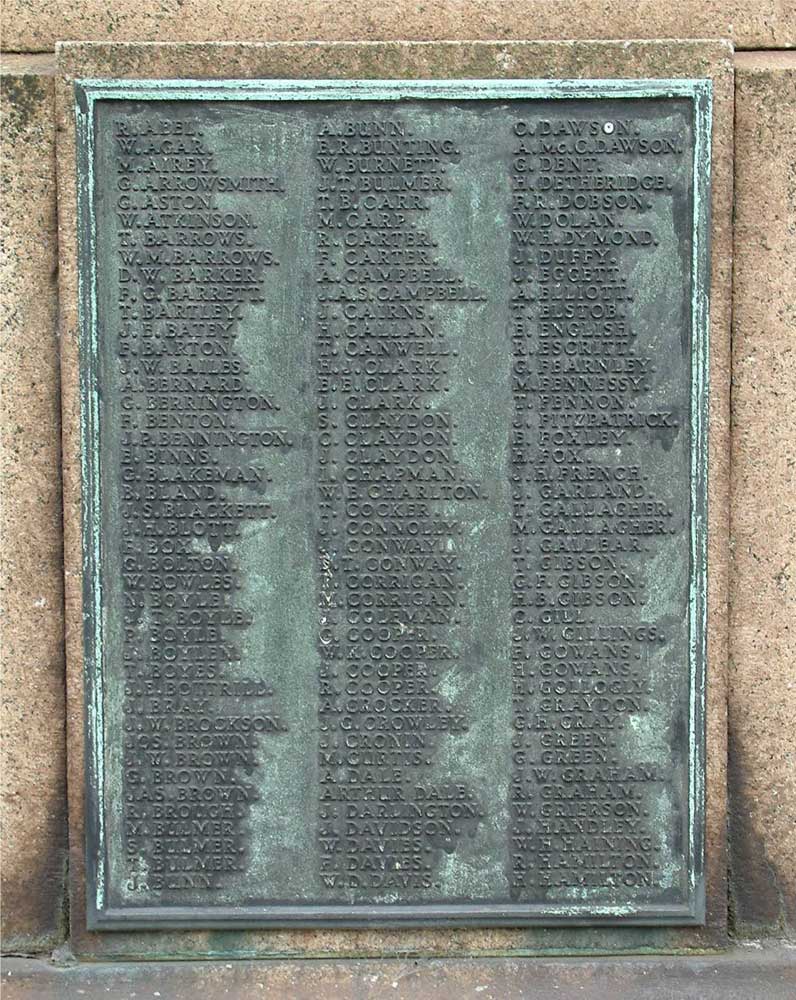 The three plaques of the South Bank War Memorial are shown below as thumbnail images. To view a larger version of the image (approx 800 x 1000 pixels) simply click on the thumbnail in order to open a new window.
