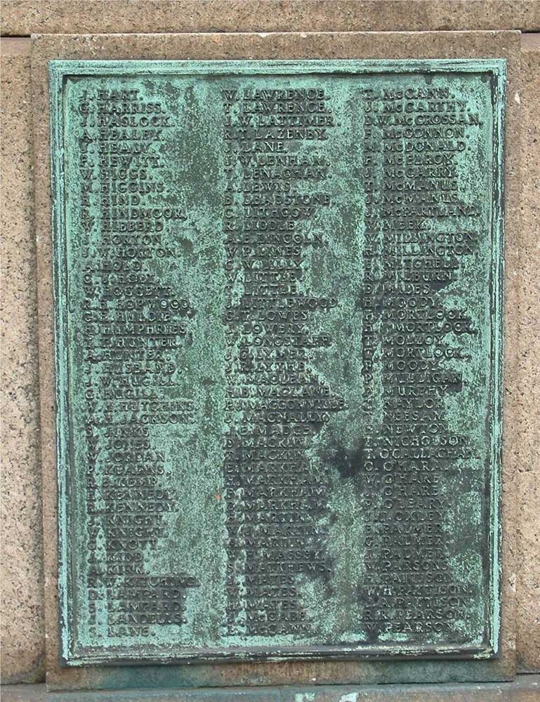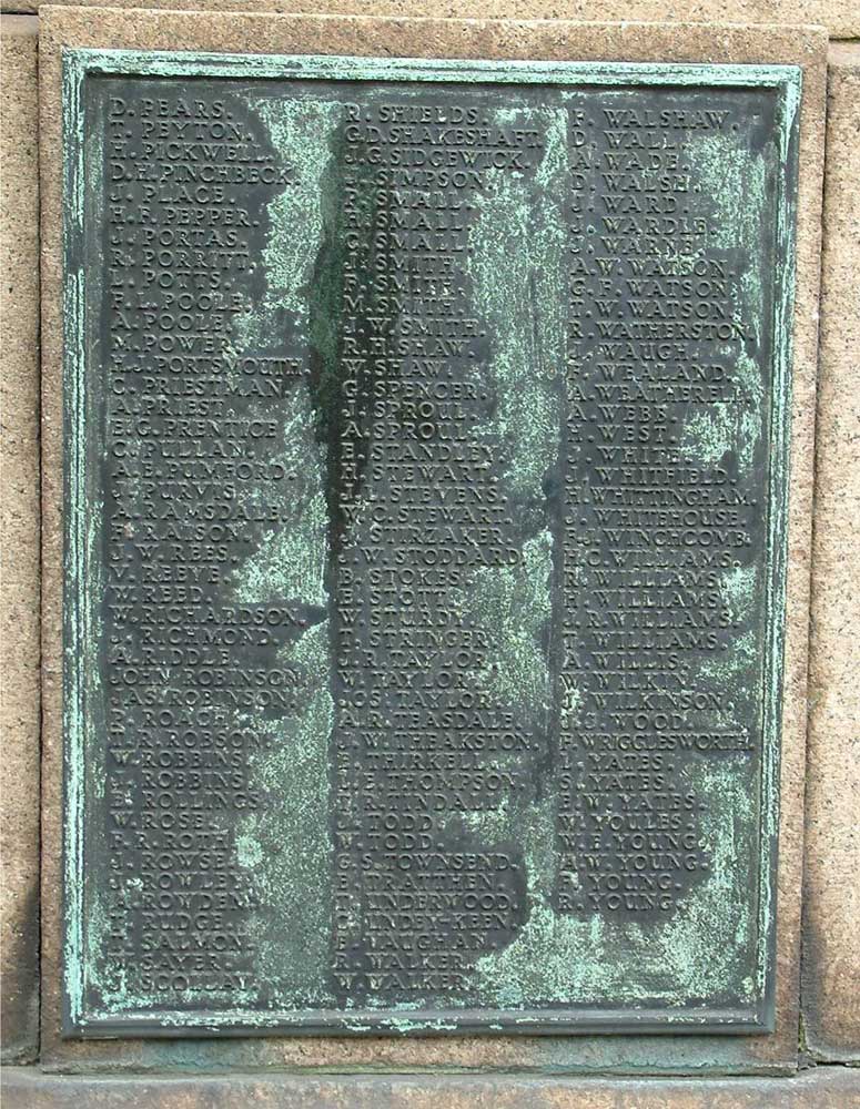 Stan Grosvenor (<csstan@mametz.fsnet.co.uk>) has kindly photographed the memorial and the three bronze tablets from which the names of the dead have been transcribed.