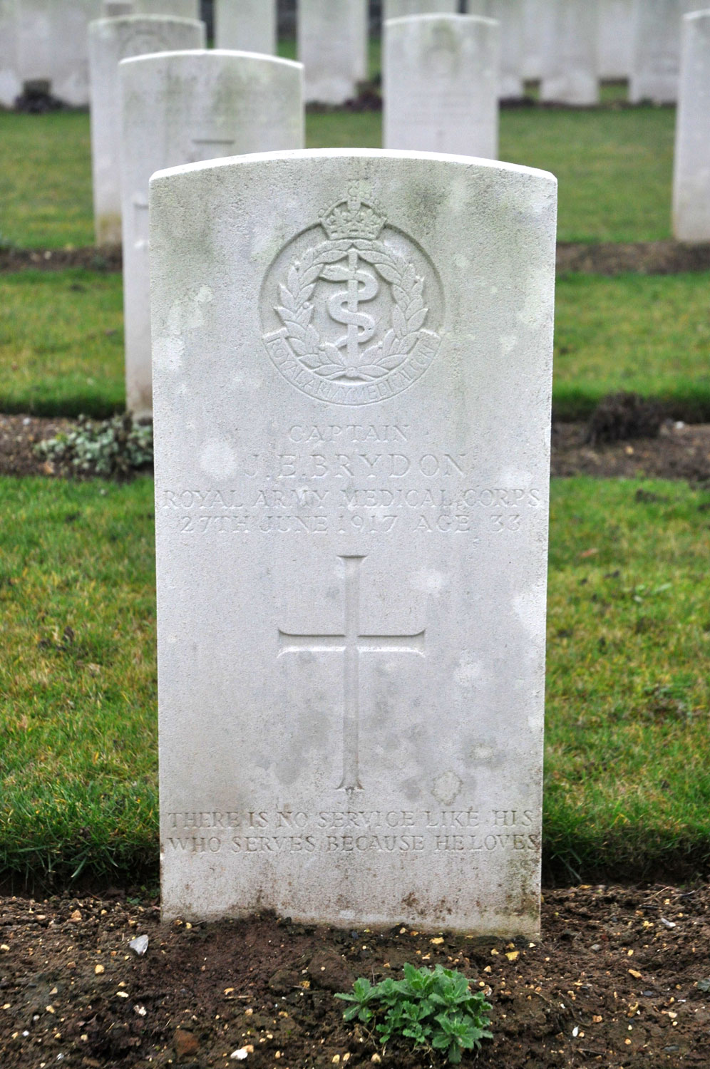 Royal Army Medical Corps, attached to 4th Battalion Yorkshire Regiment. Son of Mrs. Helen C. Brydon, of 5, Cobden Crescent, Edinburgh. Killed on 27 June 1917. Aged 33. "THERE IS NO SERVICE LIKE HIS