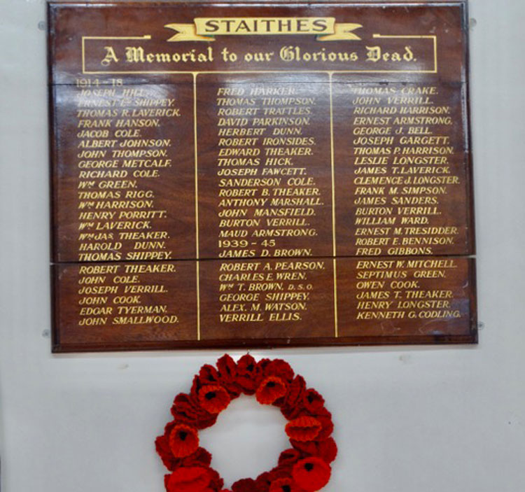 War Memorial Plaque in the Memorial Hall, Staithes