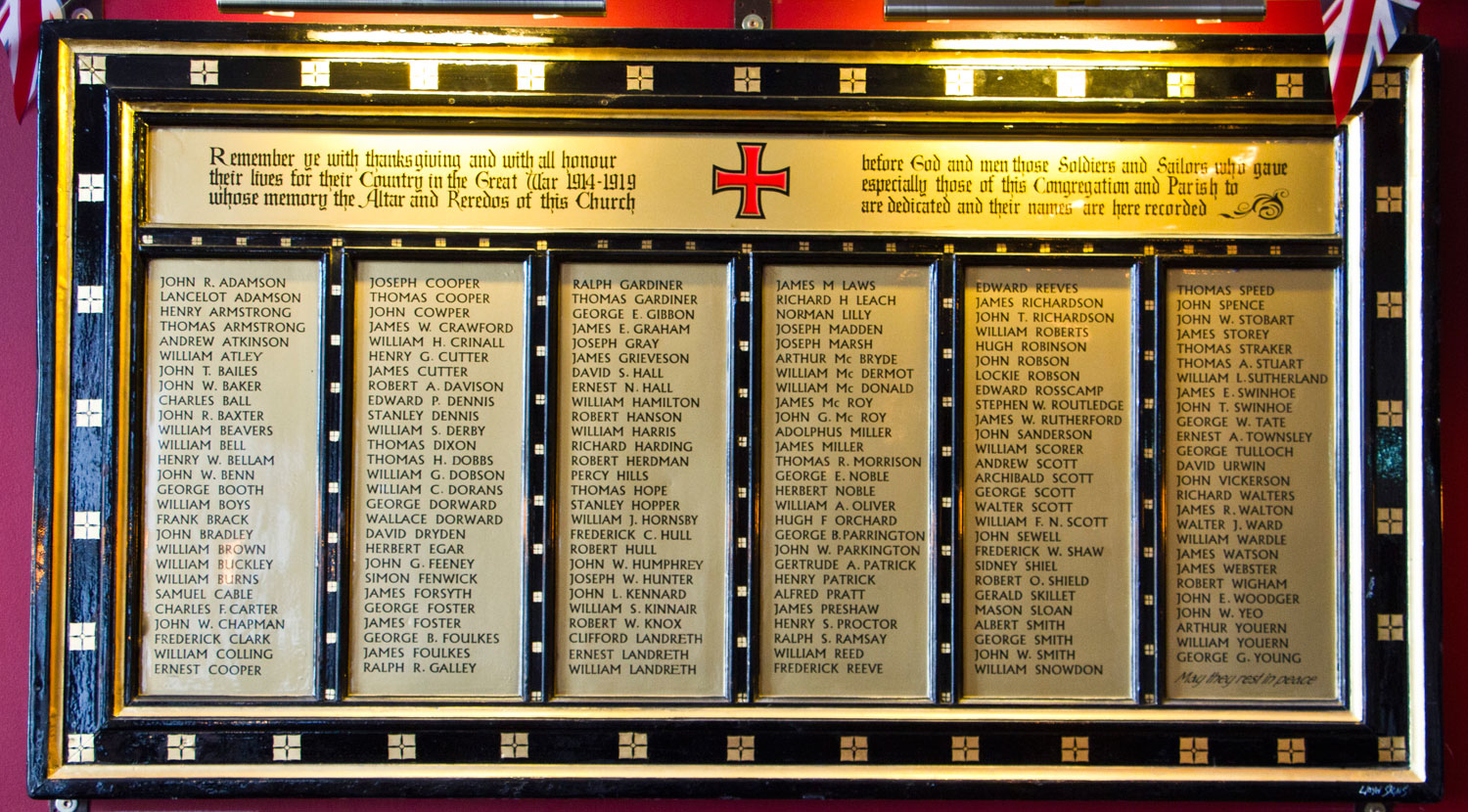 The First World War Roll of Honour was originally in the Venerable Bede Church until its demolition in 1963. The Church which was in Monk Street, Monkwearmouth, was the main parish church for the Parish of the Venerable Bede.