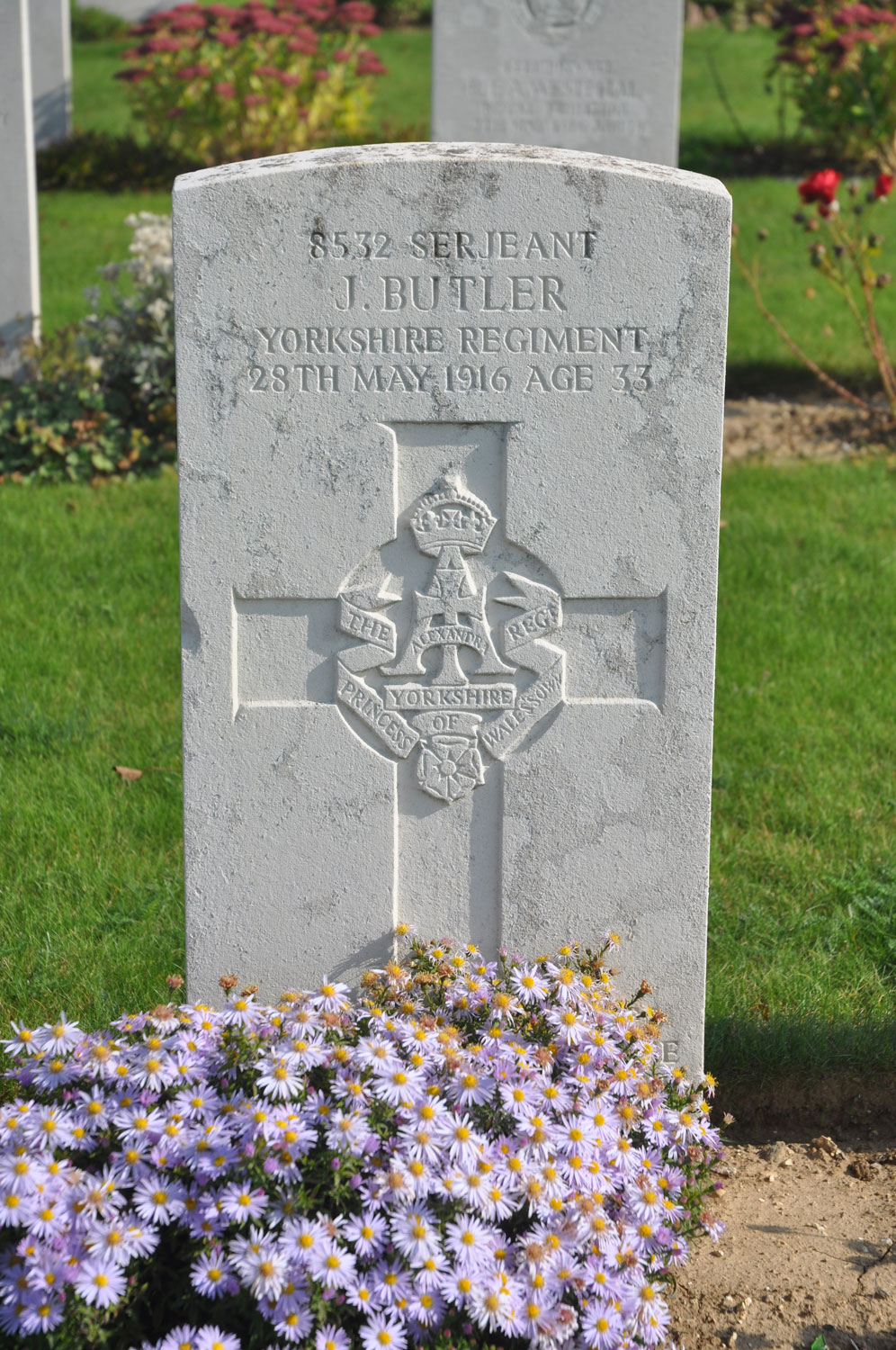 8532. 8th Battalion Yorkshire Regiment. Husband of Jeannie Matthews (formerly Butler), of 8, Bolckow St., Middlesbrough. Died 28 May 1916. Aged 33.> Born Middlesbrough, Enlisted Stockton-on-Tees, Resided Middlesbrough. "A CALM AND UNDISTURBED REPOSE A SAFE RETREAT FROM ALL OUR WOES" |