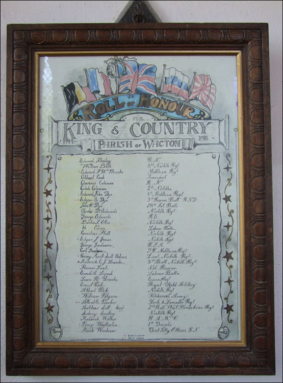 The Roll of Honour in All Saints' Church, Wacton