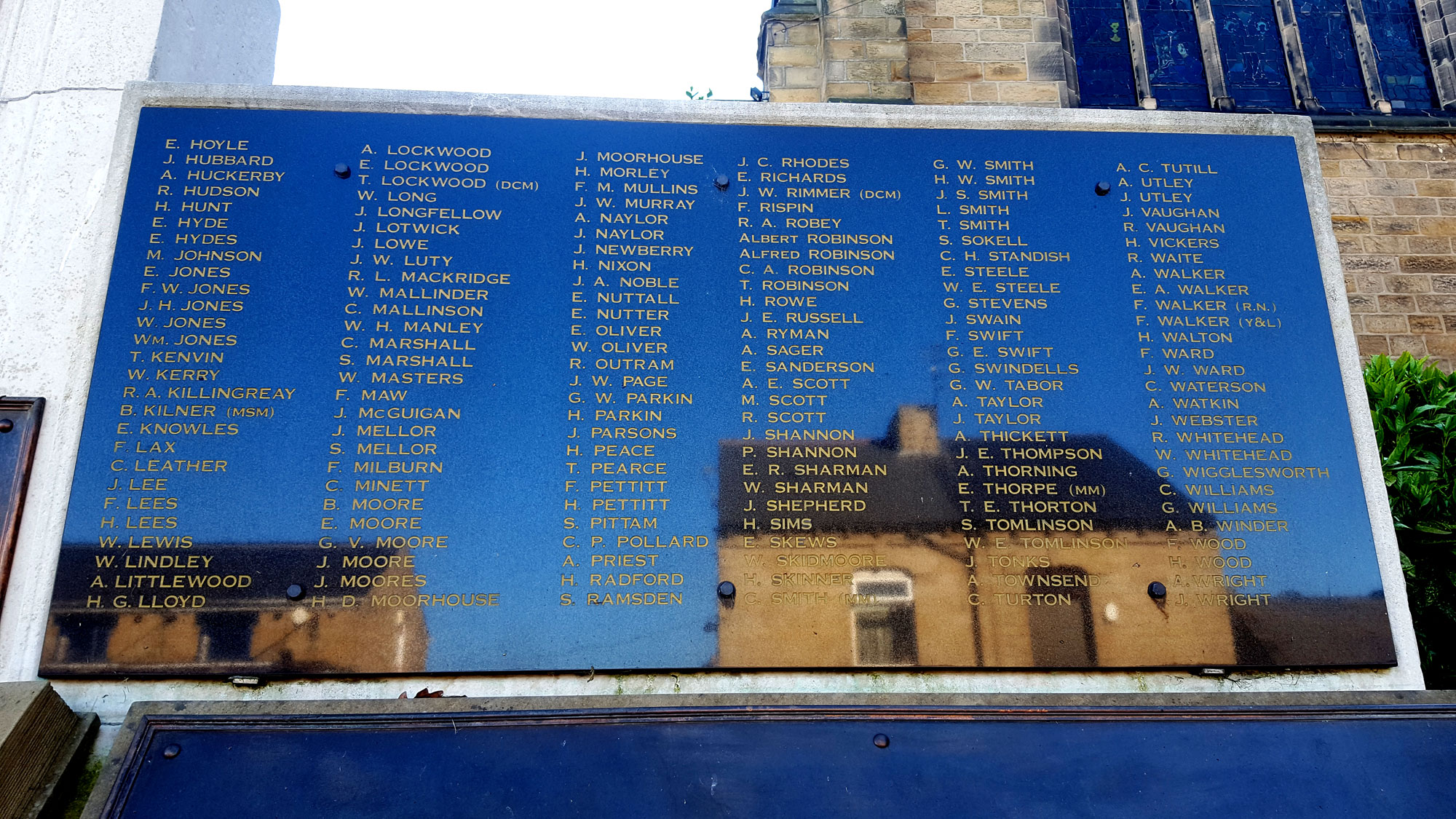 363 names are commemorated as having lost their lives in the First World War, and 40 in the Second World War.