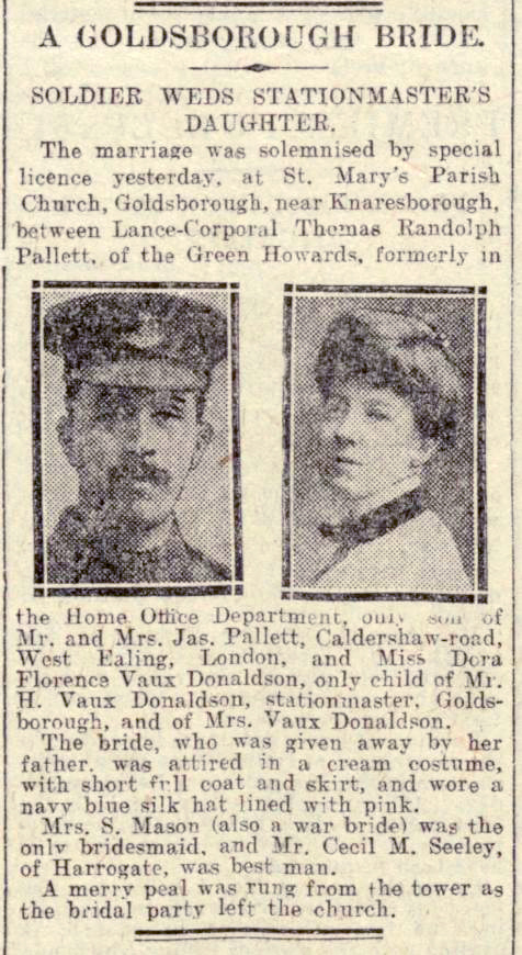- The Yorkshire Regiment, First World War L/Cpl Thomas Randolph PALLETT. 46065 Close window to return to main page |