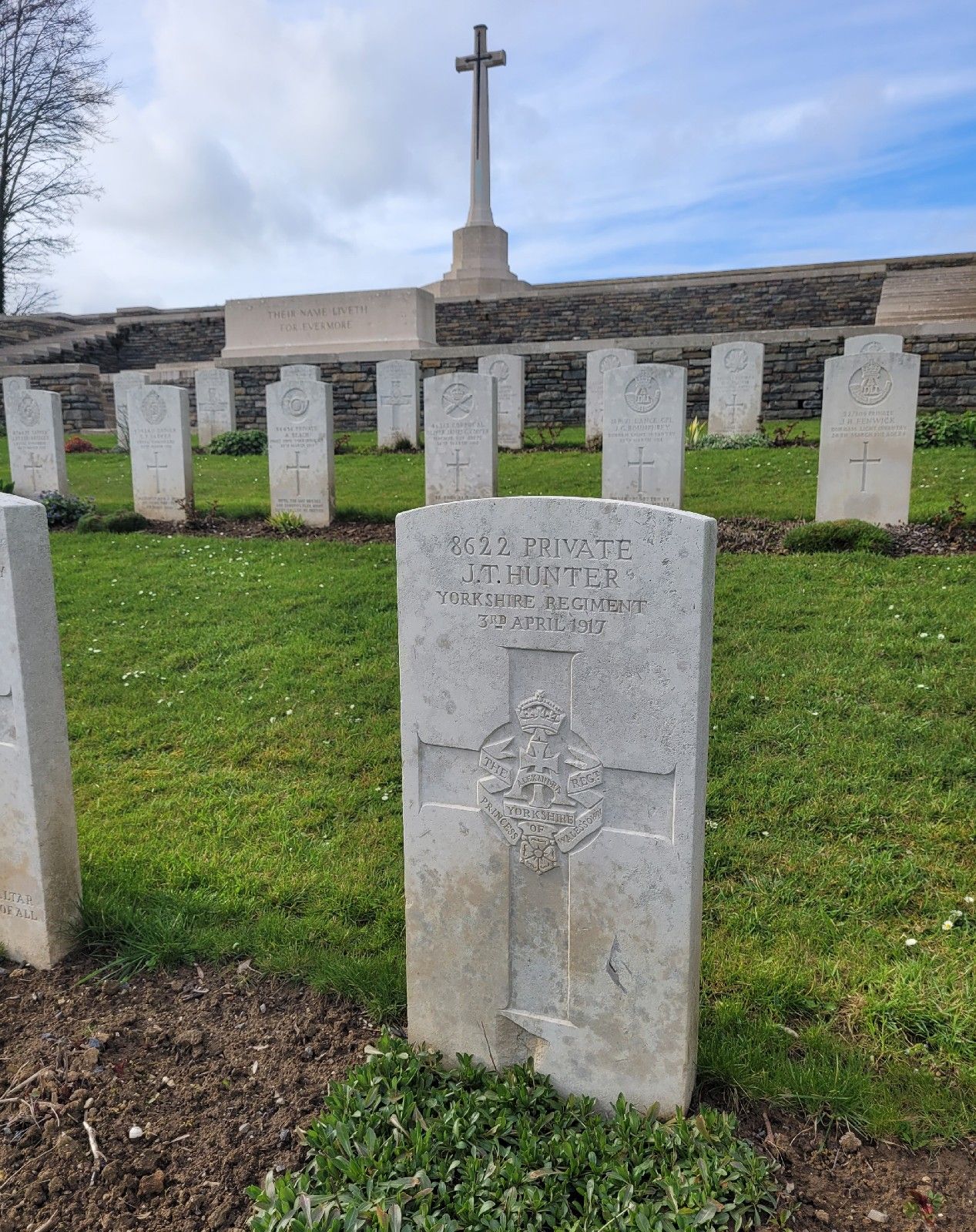 Amongst the graves in Bellacourt Miitary Cemetery is 1 for a soldier who