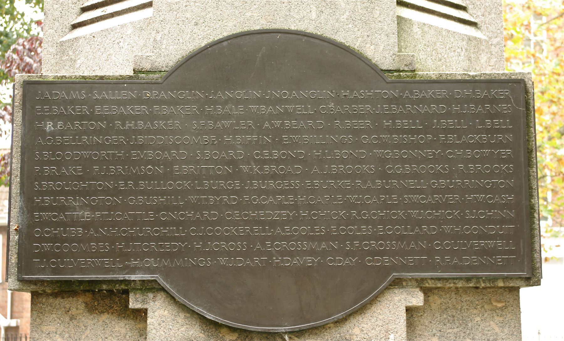The memorial commemorates the names of 364 men who fell in the First World War and 113 men who fell in the Second World War. The memorial also commemorates 3 men who died in subsequent conflicts.