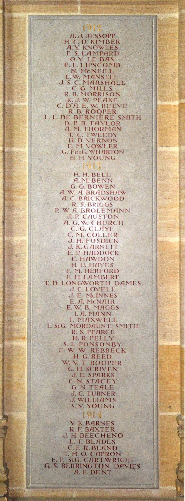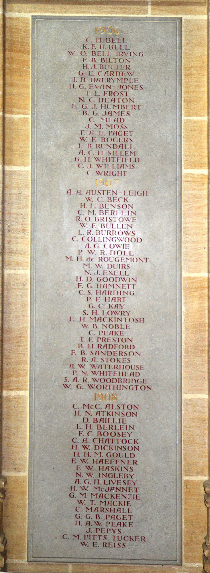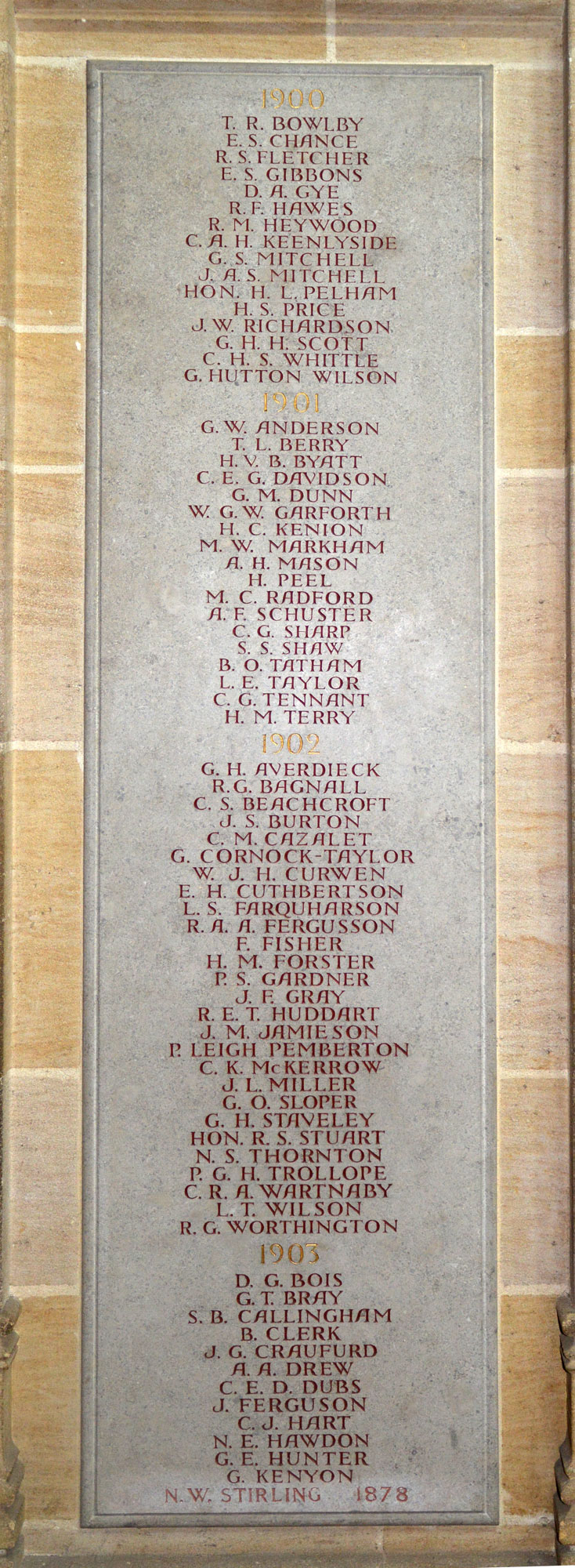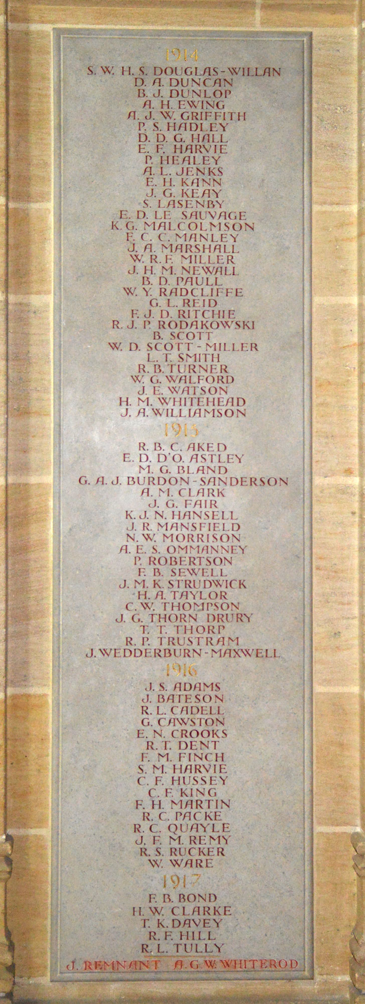 masters and other school staff. Their names are commemorated on stone panels