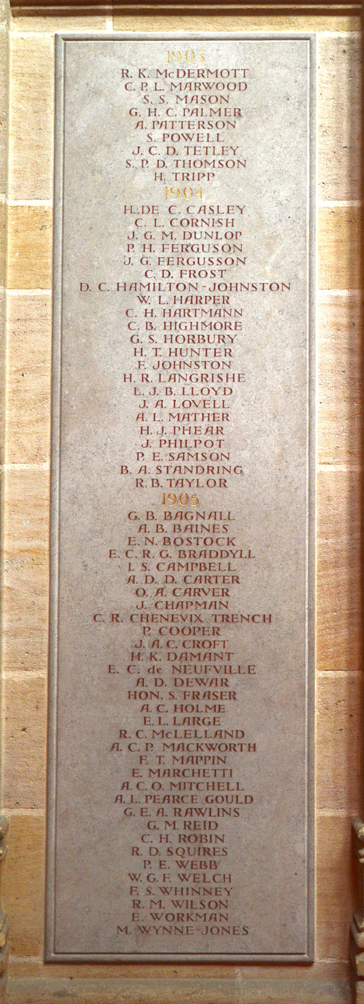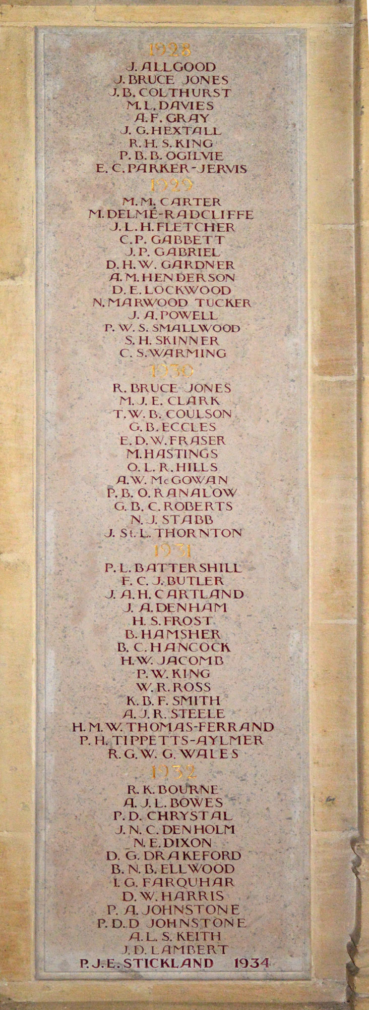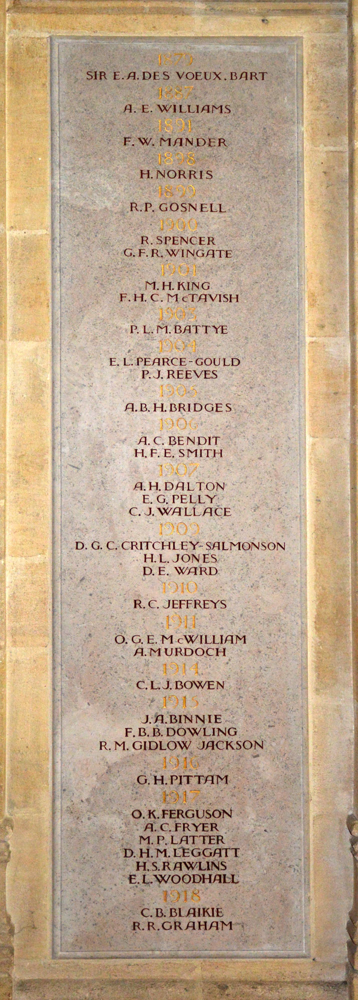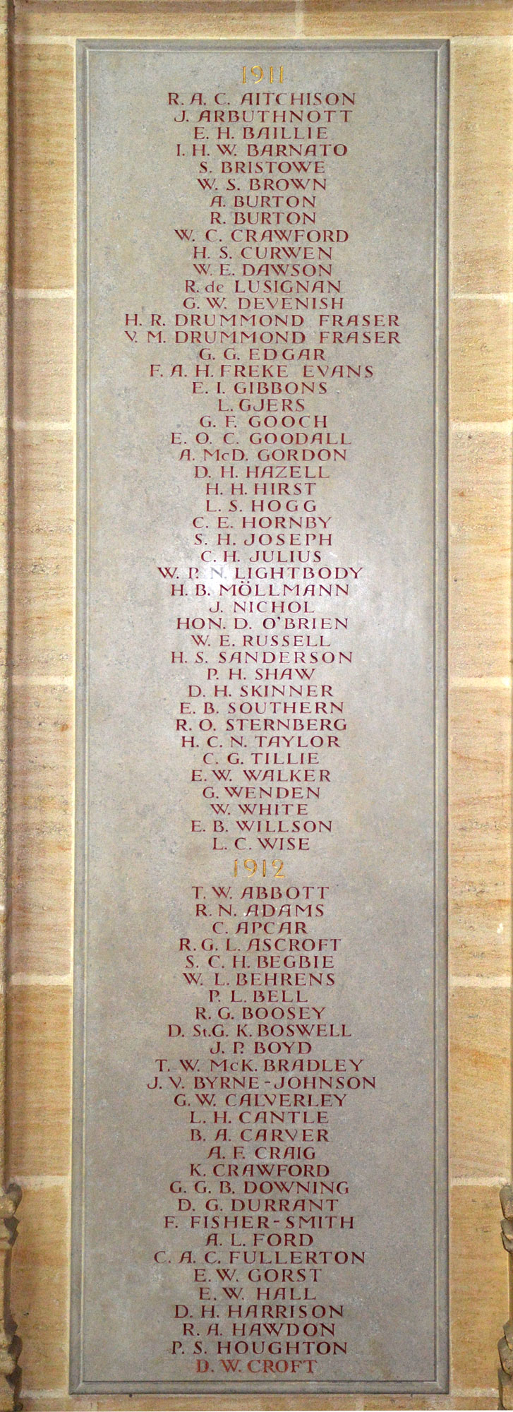 masters and other school staff. Their names are commemorated on stone panels