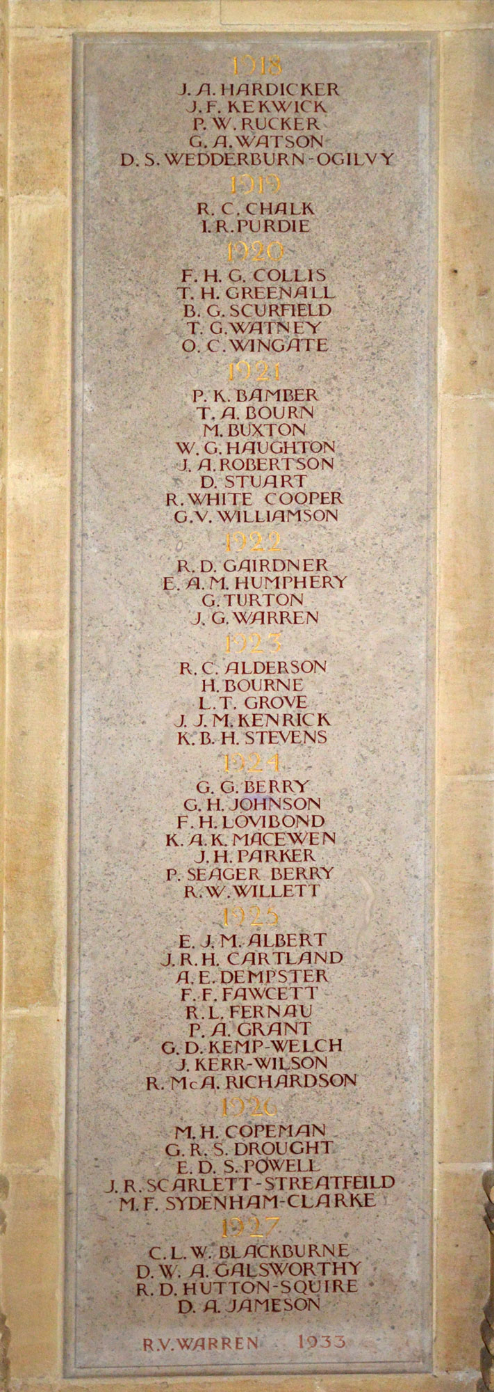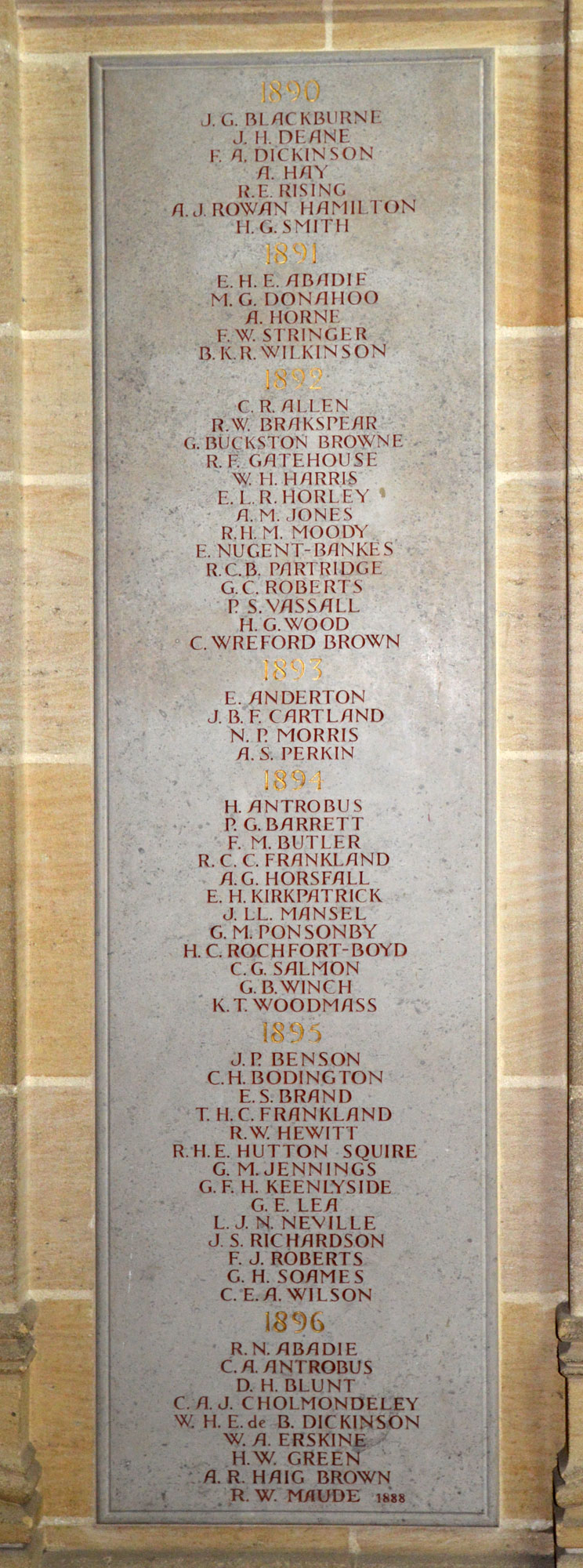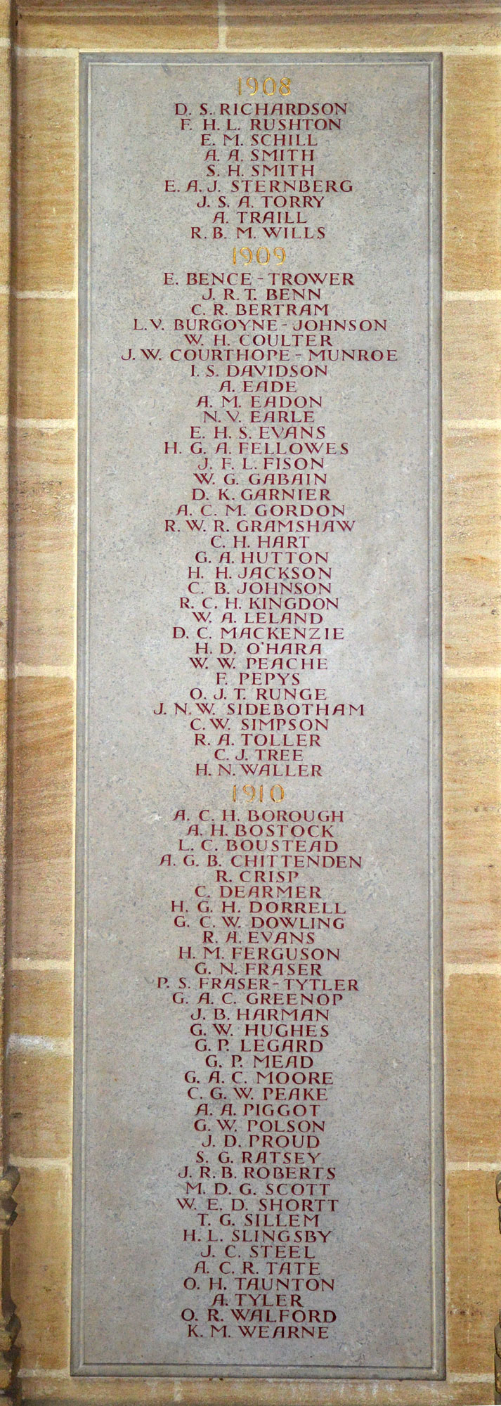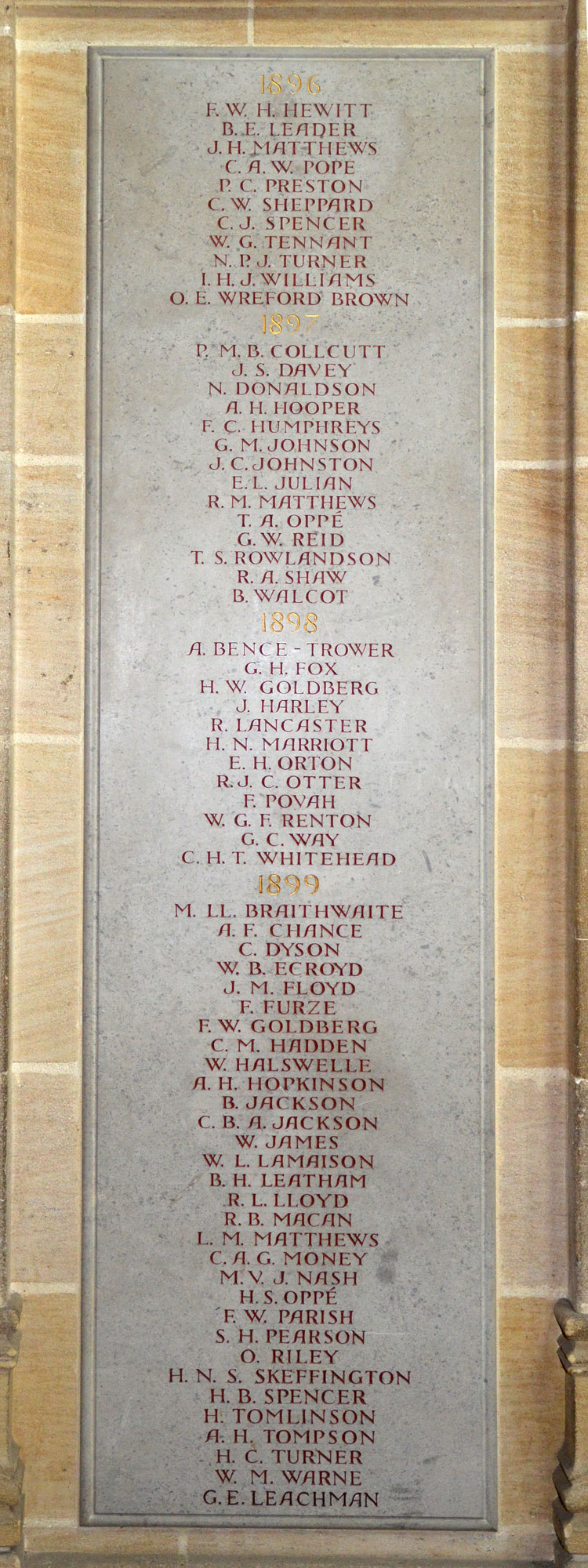 masters and other school staff. Their names are commemorated on stone panels