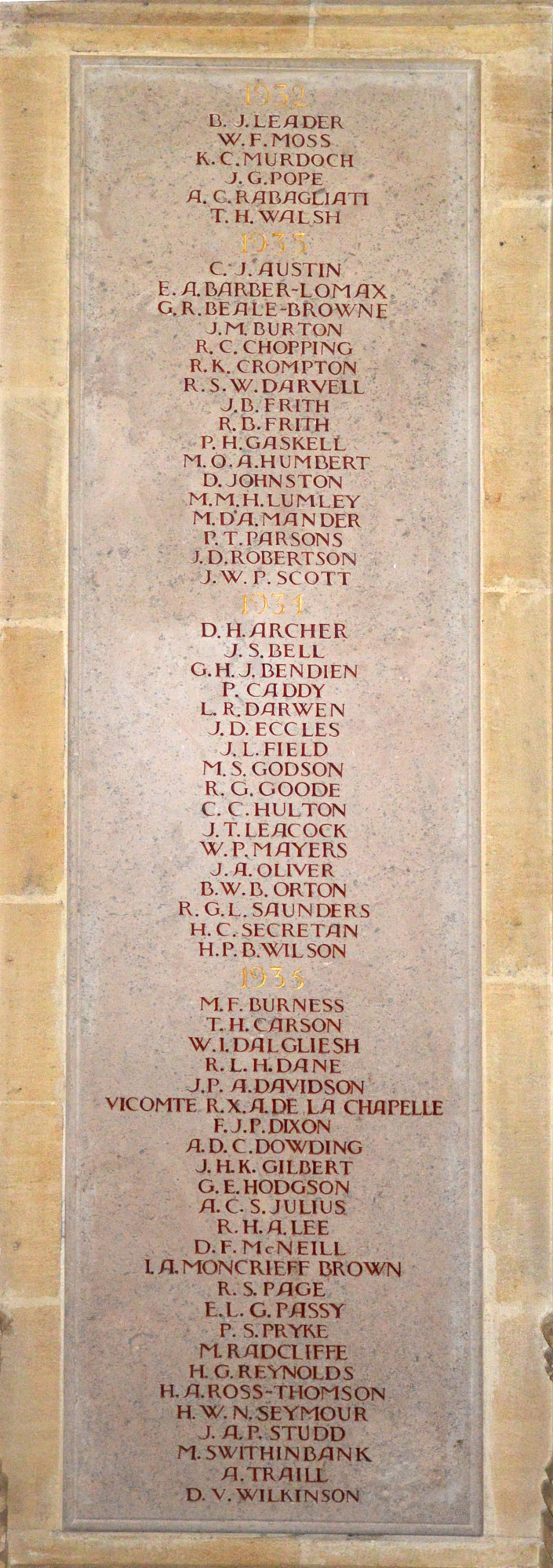 Lieutenant Eade's name on the Charterhouse Chapel Memorial is on the Panel