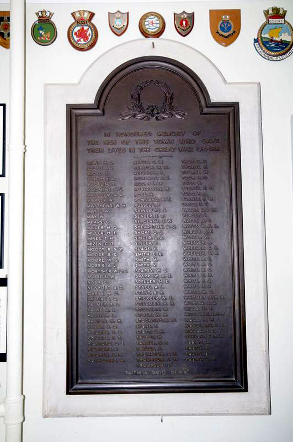 300 names are commemorated as having lost their lives in the First World war and 85 in the Second World war. 1 soldier who died in the Falklands conflict is also commemorated.