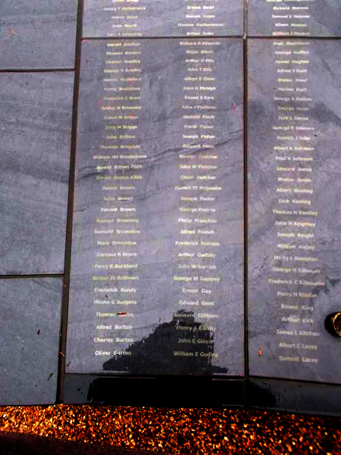The names commemorated on the memorial are barely legible (they seem to have
