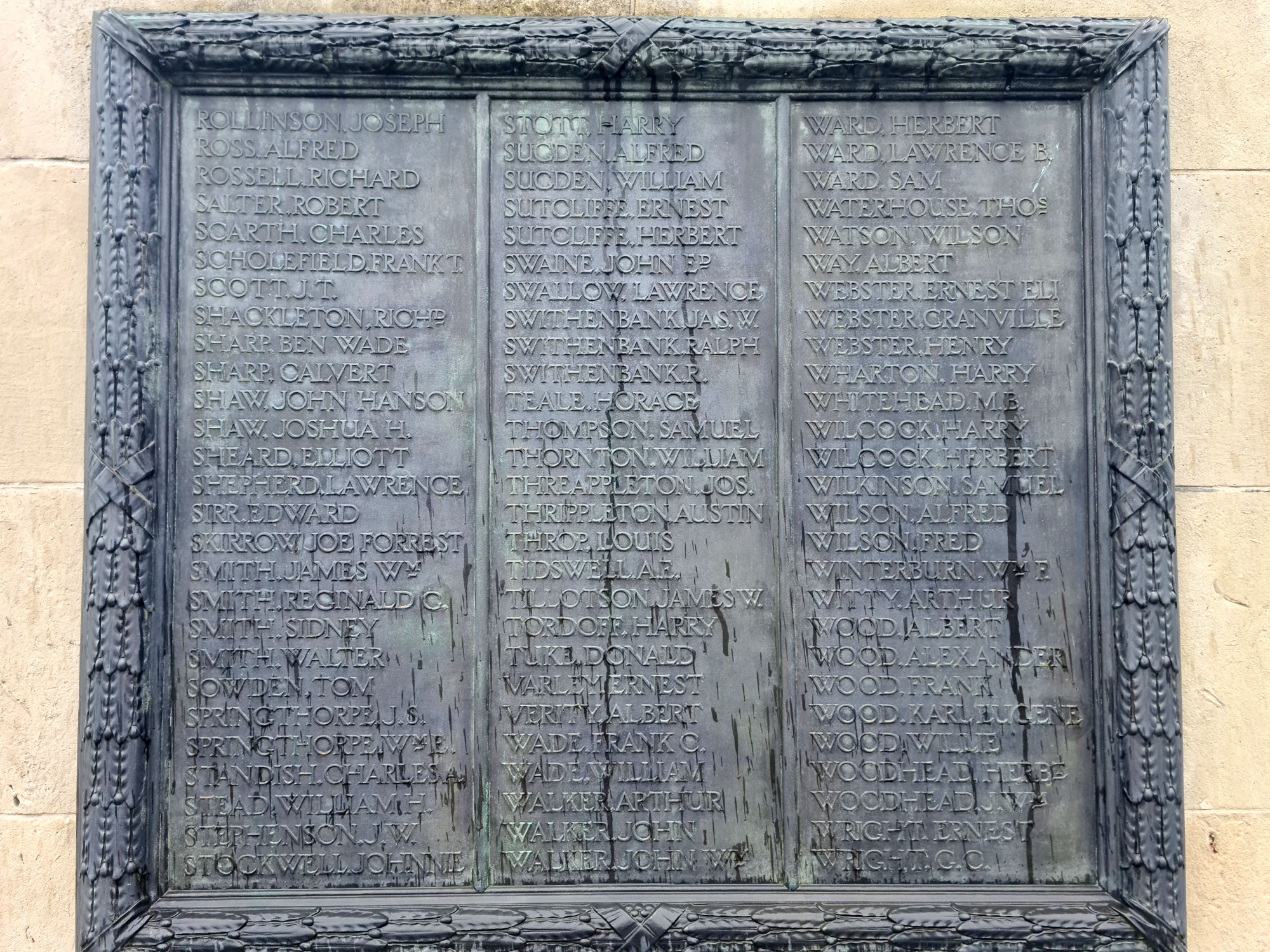 World War Commemorations "R" - "W" on the Pudsey War Memorial.