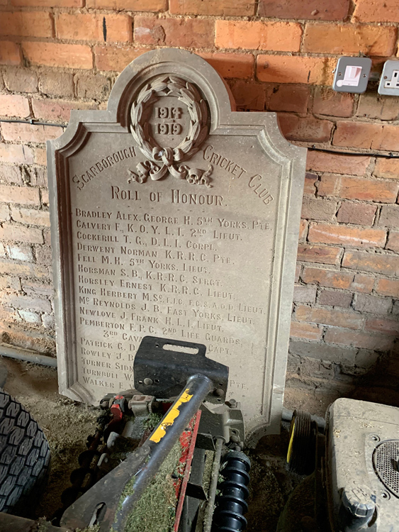 The First World War Memorial for Scarborough Cricket Club has been found languishing in a groundsman's shed at the club grounds. Unfortunately the memorial is severely eroded and some of the names are extremely difficult to make out. It is intended that this memorial can be restored and re-erected during the 2026 cricket season.